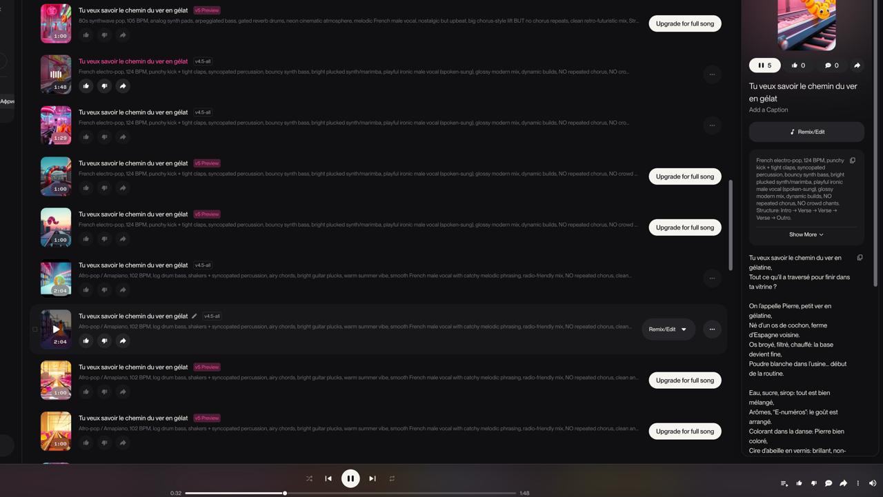 Since this project targets the French market, the track had to be in French. We wrote a script about how the gummies are produced, the ingredients like gelatin, and the overall process. Then, we used Suno to generate the track.