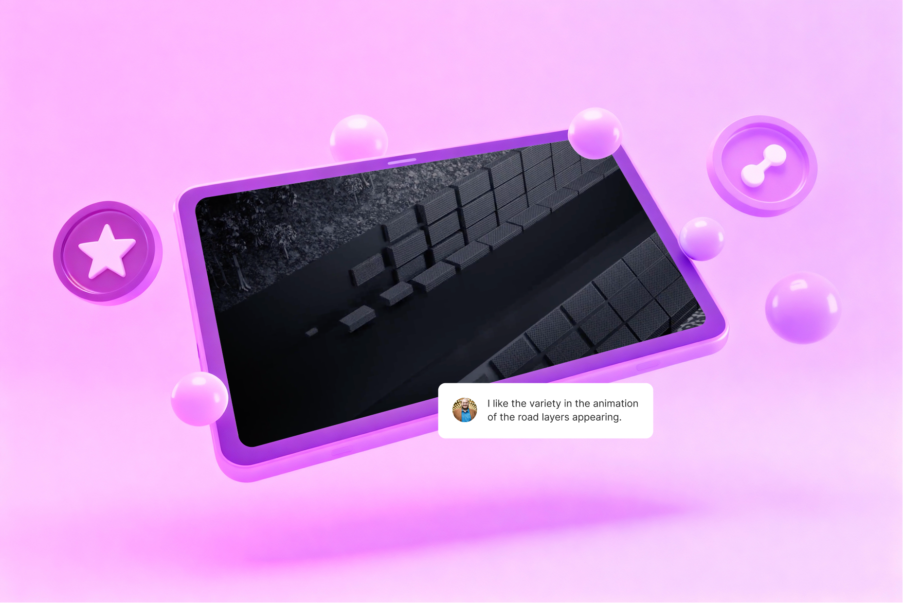 First, we experimented with the environment. What surrounds a 3D road cutaway? Just soil? Too boring. We offered the client several options: from clean abstract white or black spaces to more detailed landscapes. After finalizing the style in the first scene, we applied it to the entire video.